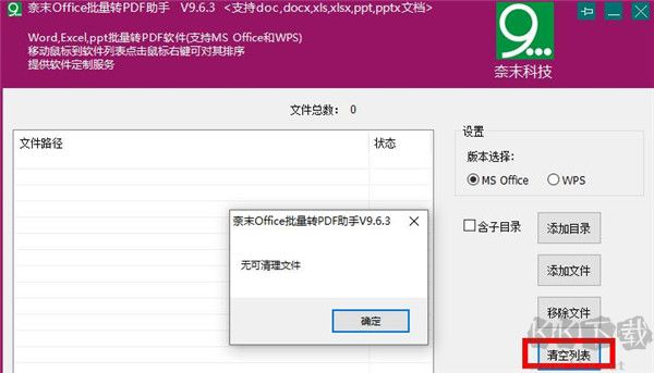 3、若想清空導(dǎo)入文件,只需點(diǎn)擊“清空列表”,確定后即可清空全部導(dǎo)入的word/excel/powerpoint文件。
