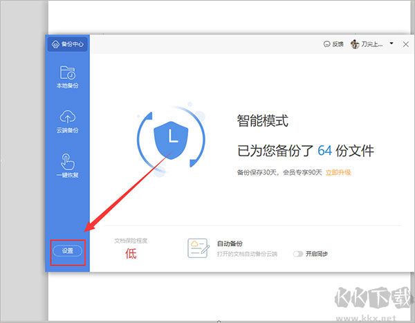 3、點擊打開wps2019備份中心,點擊設(shè)置按鈕選項;