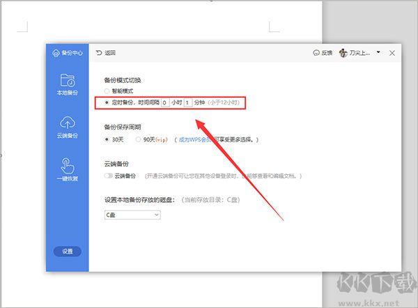 5、在備份模式下切換到定時備份,設(shè)置好時間,就可以自動保存。