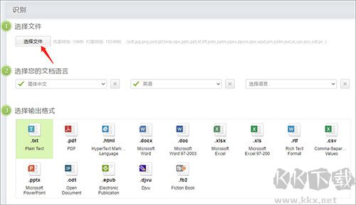 1、先打開軟件,跟著提示一步步來就行,免費版能轉(zhuǎn)換10M以內(nèi)的文件,直接點擊“選文件”添加需要識別的文檔。