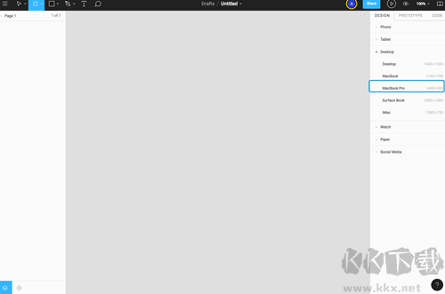 1、先按鍵盤的 A 鍵調(diào)出畫板工具,選個(gè)合適的設(shè)備尺寸,比如這次要改版網(wǎng)站首頁,就選「MacBook Pro」的模板。