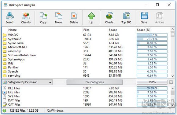 可以快速掃描本地硬盤、網(wǎng)絡(luò)共享或 NAS 設(shè)備,找出占用空間最多的文件和文件夾,并以直觀的圖表展示,還能導(dǎo)出詳細(xì)報(bào)告。