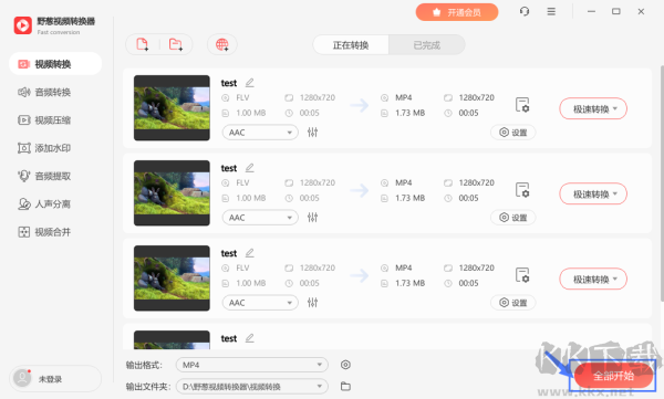點(diǎn)擊右下角的“全部開始”按鈕,等待當(dāng)前所有文件批量轉(zhuǎn)換完成提示即可。