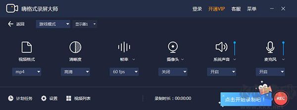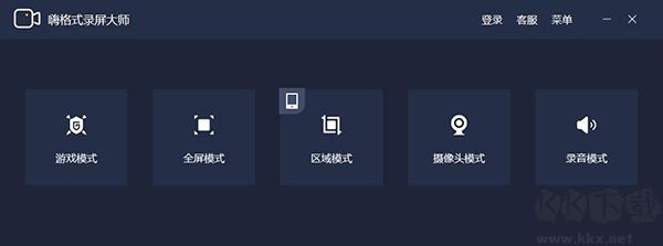 可以選擇“游戲模式、全屏錄制、區(qū)域錄制、攝像頭錄制、只錄聲音等五種錄制模式。