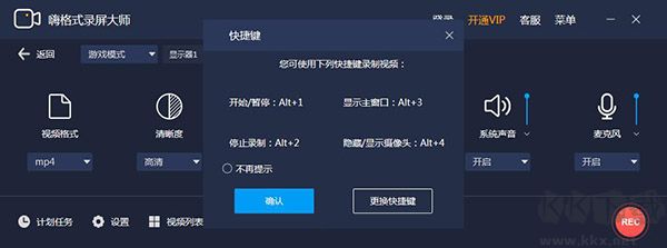 設(shè)置錄制視頻的格式、錄制畫質(zhì)不同的清晰度、錄制的幀率、攝像頭的開啟和關(guān)閉、系統(tǒng)聲音的開啟和關(guān)閉、麥克風(fēng)聲音的開啟和關(guān)閉