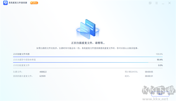 開始進(jìn)行重復(fù)文件掃描,可以在掃描完成前進(jìn)行「停止」操作。