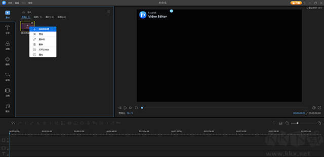 右鍵單擊影片,選擇「添加到軌道」將文件加入軌道或直接拖曳加入軌道。