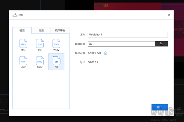 單擊工具欄上的「導(dǎo)出」將影片導(dǎo)出為所需的格式。