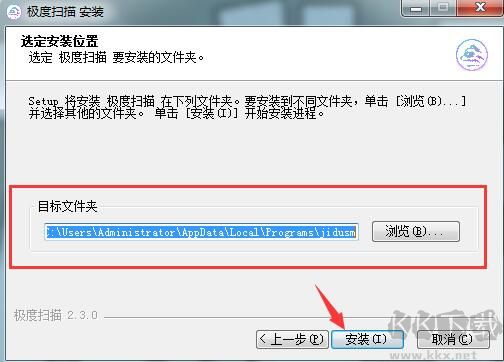 4、選擇語安裝位置,可點(diǎn)擊“瀏覽”自定義目標(biāo)文件夾的位置,選擇完成點(diǎn)擊“安裝”;