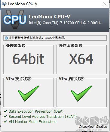 LeoMoon CPU-V是一款用來(lái)檢測(cè)您的CPU是否支持CPU虛擬化技術(shù)的工具,啟動(dòng)程序后,界面直接顯示當(dāng)前CPU對(duì)VT-x/AMD-V技術(shù)的支持情況,同時(shí)反映BIOS中的啟用狀態(tài),這項(xiàng)技術(shù)是運(yùn)行虛擬機(jī)的基礎(chǔ)條件,通常在高級(jí)選項(xiàng)中找到虛擬化相關(guān)菜單,將其狀態(tài)調(diào)整為Enabled,檢測(cè)結(jié)果有助于用戶提前了解硬件兼容性,避免后續(xù)安裝虛擬平臺(tái)時(shí)出現(xiàn)障礙,適合各類技術(shù)水平的計(jì)算機(jī)使用者。