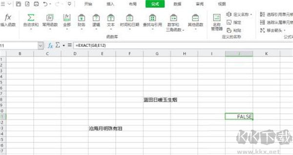 6、完成操作后,可返回兩個(gè)單元格的內(nèi)容是否相等的結(jié)果。若為FALSE,則表示兩個(gè)單元格的文本內(nèi)容不相等。
