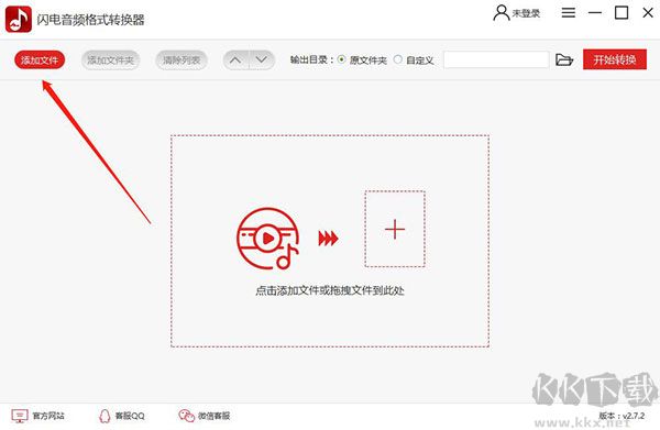 1、雙擊打開閃電音頻格式轉(zhuǎn)換器后,點(diǎn)擊左上方的“添加文件”,然后將需要轉(zhuǎn)換格式的音頻上傳到軟件上。