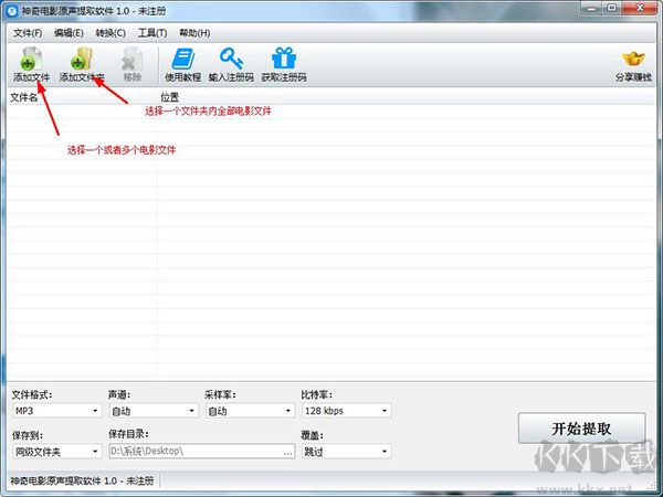 1、點(diǎn)擊”添加文件“或”添加文件夾“選擇將要提取的電影文件,如圖所示: