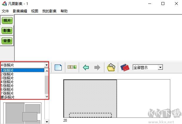 在下拉菜單里確認(rèn)照片擺放張數(shù)。
