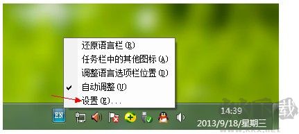 1、把鼠標(biāo)移到EN處,右鍵打開菜單,點(diǎn)擊:設(shè)置