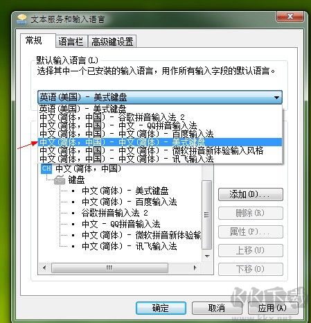 2、打開設(shè)置后,選擇:中文(簡(jiǎn)體,中國(guó)) - 中文(簡(jiǎn)體) - 美式鍵盤