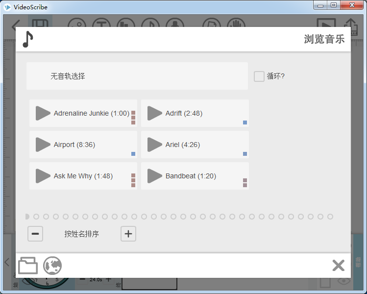 7、videoscribe也是可以添加音樂的,這里顯示音樂名字和時(shí)間長度