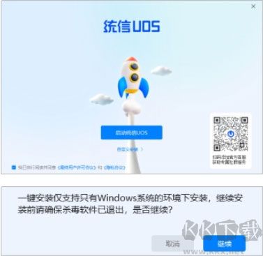 2、單擊 【啟動(dòng)統(tǒng)信UOS】。確認(rèn)電腦是否只安裝了Windows,無其他操作系統(tǒng),確認(rèn)無誤單擊【繼續(xù)】。
