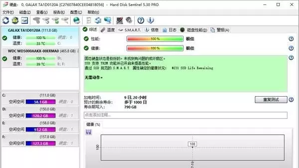 根據(jù)應(yīng)用HardDiskSentinel,能夠 運行硬件配置硬盤自查。