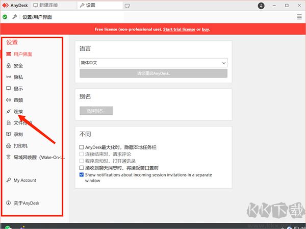 2、進(jìn)入設(shè)置界面,選擇左邊“連接”選項(xiàng),