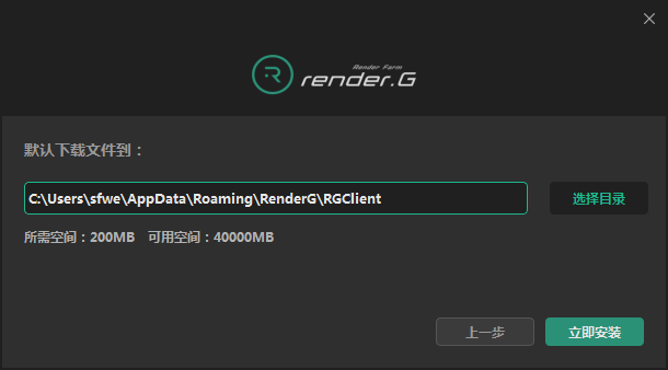 2.選擇軟件安裝位置,默認(rèn):C:\Users\tsfwe\AppData\Roaming\RenderG\RGClient