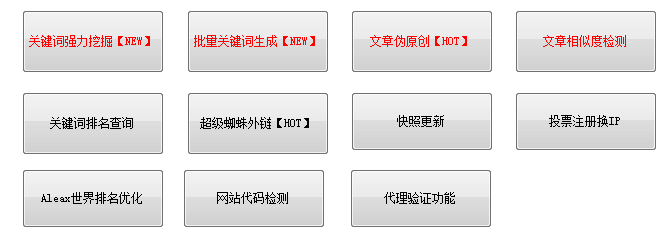 流量提升、文章偽原創(chuàng)、排名挖掘查詢是立刻見效的;網(wǎng)站權(quán)重3-5天見效;超級蜘蛛外鏈、網(wǎng)站優(yōu)化、下拉相關(guān)3-15天左右;