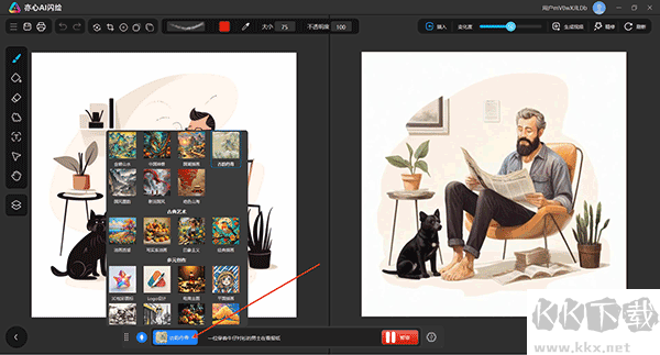 1、打開軟件登錄后,就能直接開始AI繪畫。你可以新建空白畫布自由創(chuàng)作,或者直接選用系統(tǒng)推薦的模板來(lái)快速上手。