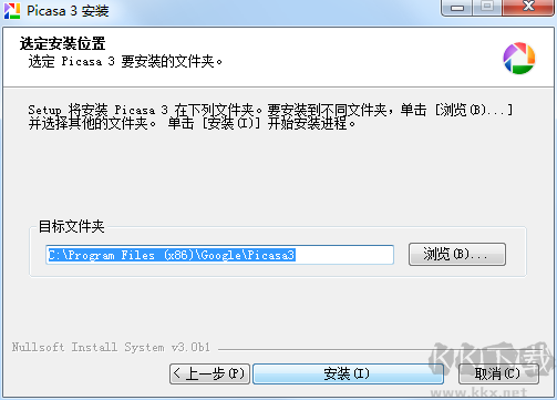 2、選擇Picasa的安裝位置,點(diǎn)擊瀏覽可以修改默認(rèn)在C盤的安裝位置,建議大家選擇安裝在D盤,然后并點(diǎn)擊安裝