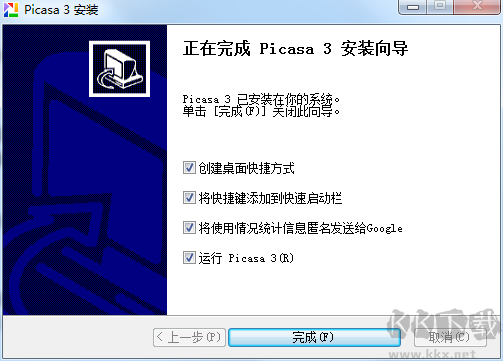 4、Google Picasa安裝成功,點(diǎn)擊完成即可