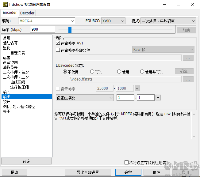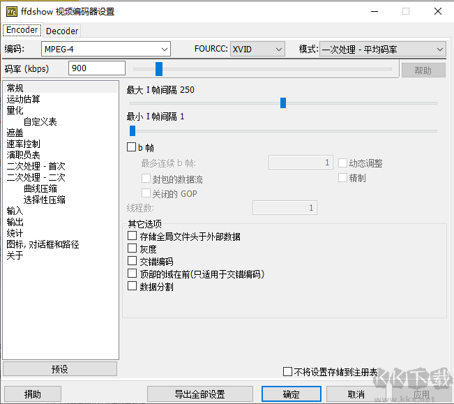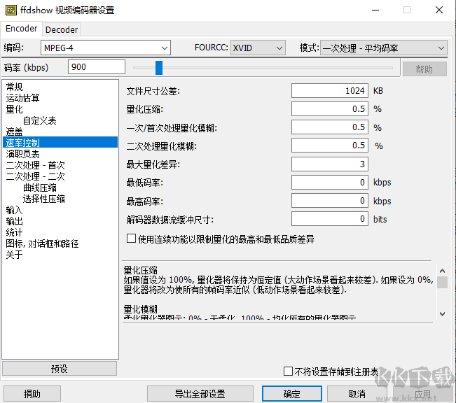2、在【Encoder】編碼器部分,提供多種調(diào)節(jié)選項(xiàng),比如【常規(guī)設(shè)置】、【動(dòng)態(tài)估算】、【量化參數(shù)】、【遮罩處理】、【碼率調(diào)控】、【片尾信息】、【曲線優(yōu)化】等,方便精細(xì)調(diào)整。