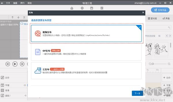 4、發(fā)布作品,將項(xiàng)目輸出為視頻、GIF和發(fā)布。