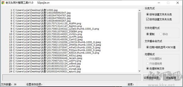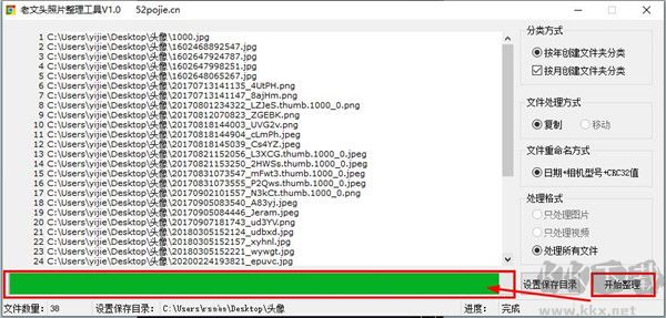 老文頭照片整理工具是綠色小巧簡(jiǎn)單易用的電腦照片整理工具,還是一款免費(fèi)軟件。提供簡(jiǎn)潔無(wú)廣告主界面有實(shí)用照片整理功能。攝影師和喜歡收藏圖片的人電腦中常有海量照片。手動(dòng)整理費(fèi)時(shí)用該工具可直接將照片視頻或文件夾拖入軟件。選擇分類方式文件處理方式文件重命名方式處理格式等參數(shù)。設(shè)置保存目錄點(diǎn)擊開(kāi)始整理即可一鍵執(zhí)行。整理好的文件會(huì)自動(dòng)歸檔到不同文件夾中十分強(qiáng)大,喜歡的朋友快來(lái)下載試試吧!