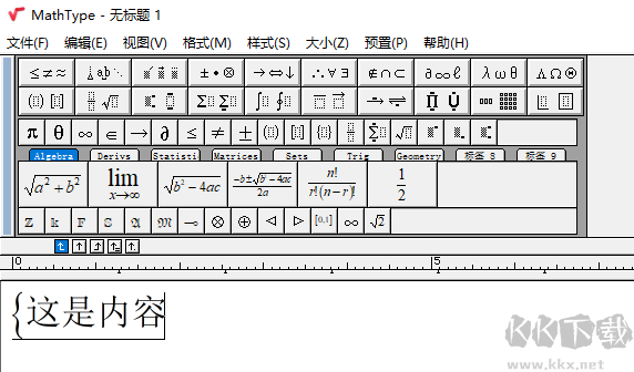 通過從該軟件的符號面板中選取模板,并在空白位置輸入內(nèi)容,快速構(gòu)建公式。輸入過程中會自動遵循數(shù)學(xué)排版的間距規(guī)則。