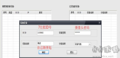 們選擇手動添加設(shè)備進去添加設(shè)備,選擇手動添加設(shè)備后會彈出一個窗口。設(shè)備密碼:就是攝像頭密碼。設(shè)路名稱:這個隨便你自己創(chuàng)健分組表。