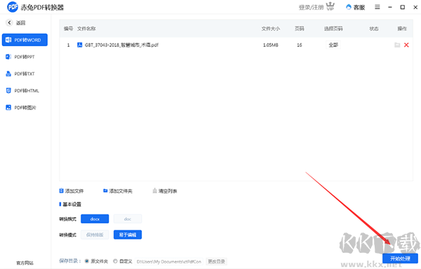 3、然后選擇你需要轉(zhuǎn)換出來的格式或者其他格式(這里我就直接選擇默認的格式了),最后點擊右下角的“開始處理”按鈕。