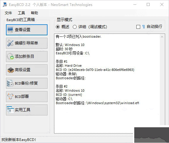 1、EasyBCD 使用起來很簡單,打開就能直接操作,主界面長下面這樣。