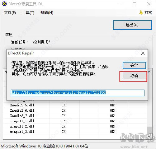 4、有些朋友檢查時會發(fā)現(xiàn)缺少很多dll文件(如圖),別著急,程序會幫你一個個修復好。