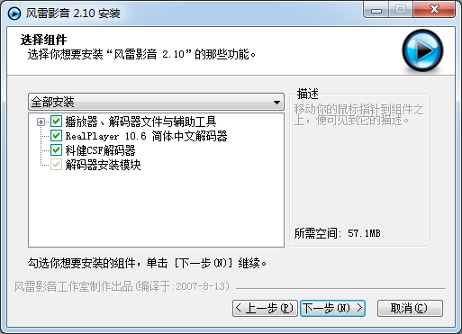 選擇你想要安裝“風(fēng)雷影音2”的那些功能。