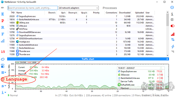 可為任意網(wǎng)絡(luò)進程設(shè)定下載與上傳的優(yōu)先級或速度限制,靈活分配帶寬資源。