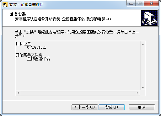 安裝程序現(xiàn)在準備開始安裝企鵝直播伴侶到您的電腦中。