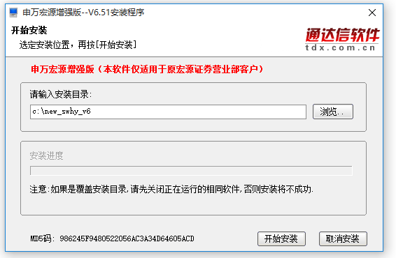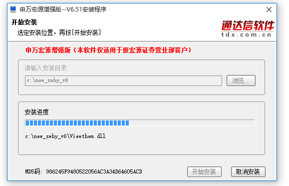 下載申萬宏源增強(qiáng)版,解壓后得到651安裝程序開始安裝;