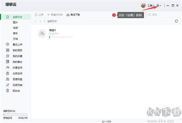 1、打開綠綠聯(lián)私有云電腦版,點(diǎn)擊「設(shè)置」按鈕;