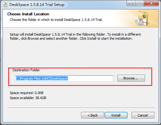 Choose the folder in which to install DeskSpace 1. 5.8.14 Trial.