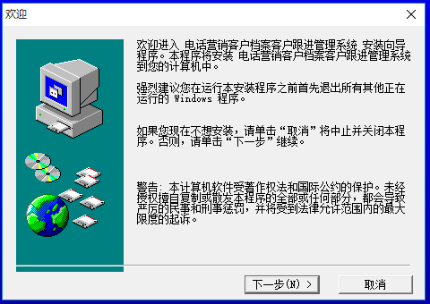 安裝向?qū)惭b電話(huà)營(yíng)銷(xiāo)客戶(hù)檔案客戶(hù)跟進(jìn)管理系統(tǒng)到下列文件夾內(nèi)。