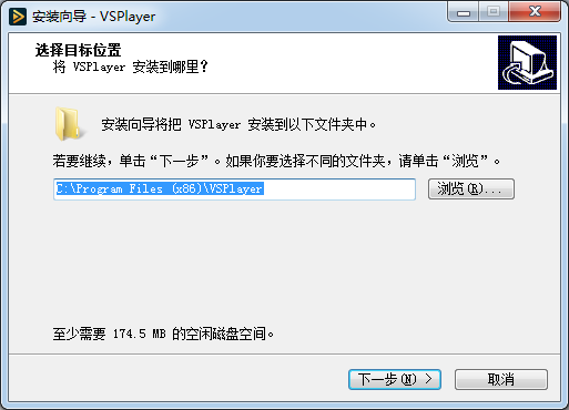 安裝向?qū)裋SPlayer 安裝到以下文件夾中。