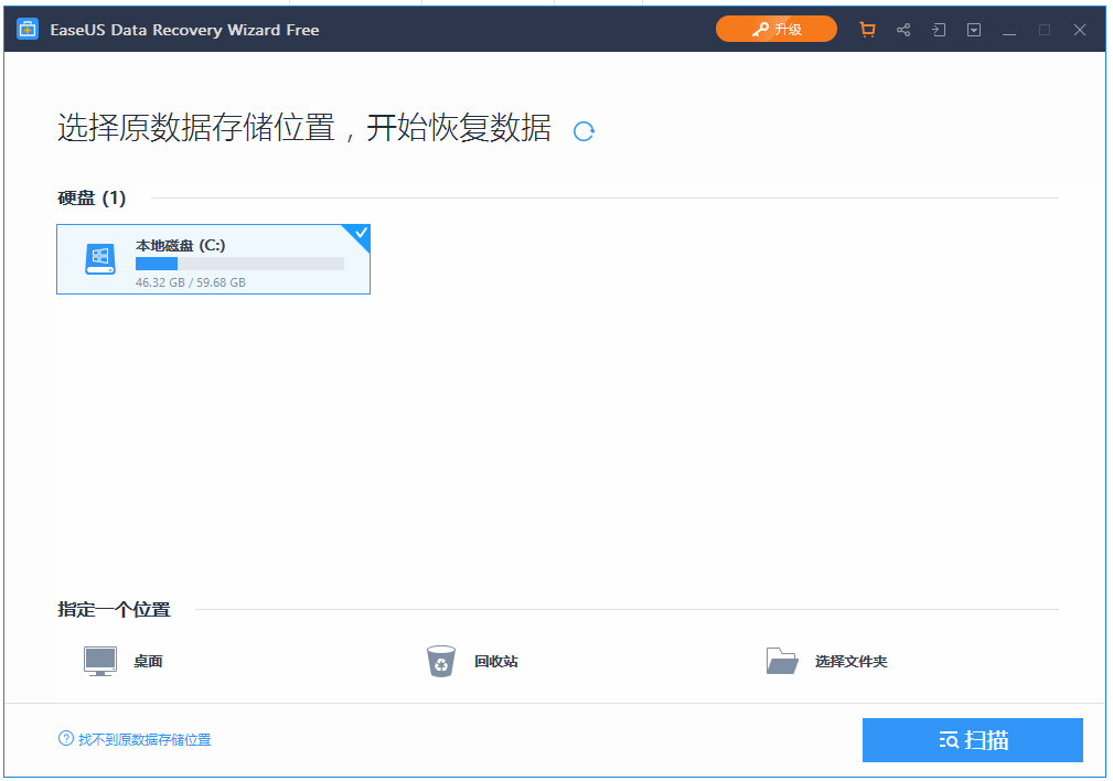 1、打開(kāi)易我硬盤(pán)數(shù)據(jù)恢復(fù)軟件,選擇丟失位置,點(diǎn)擊【掃描】,開(kāi)始查找數(shù)據(jù);