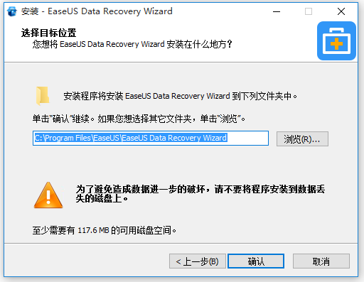 選擇軟件安裝位置,注意,不要安裝在丟失數(shù)據(jù)的磁盤(pán)中,點(diǎn)擊【確認(rèn)】,