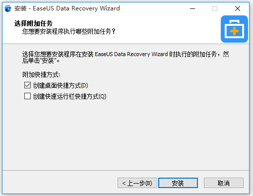 選擇您想要安裝程序在安裝EaseUS Data Recovery Wizard時(shí)執(zhí)行的附加任務(wù),然后單擊“安裝”。
