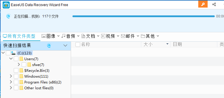 2、正在對(duì)丟失的文件掃描,掃描完成,文件可以顯示在結(jié)果區(qū)域;