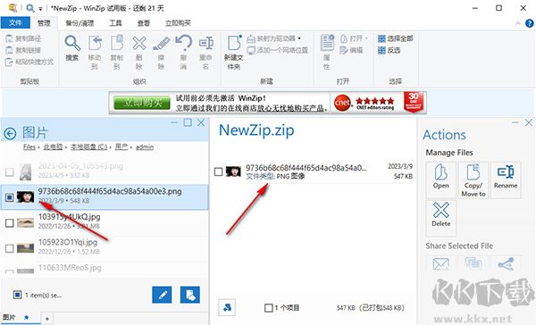 自由選擇操作環(huán)境。右鍵點擊文件或文件夾,可直接在 WinZip 或 Windows 資源管理器中打開。從資源管理器一鍵進(jìn)入 WinZip,即可使用其高級功能,如批量重命名、格式轉(zhuǎn)換、加密壓縮等,實現(xiàn)高效文件管理。
